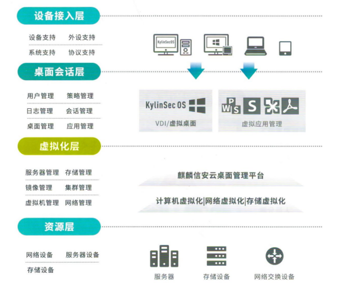 虚拟化管理平台:支持VDI、IDV及混合架构,并集资源管理、安全认证、系统监控、自动化部署、用户管理于一体。