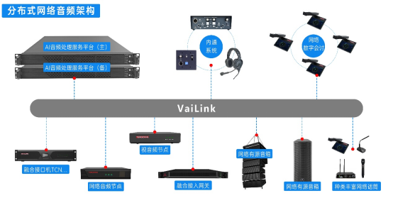 双千兆以太网端口,VaiLink网络音频传输可冗余备份,支持1+1双机热备;