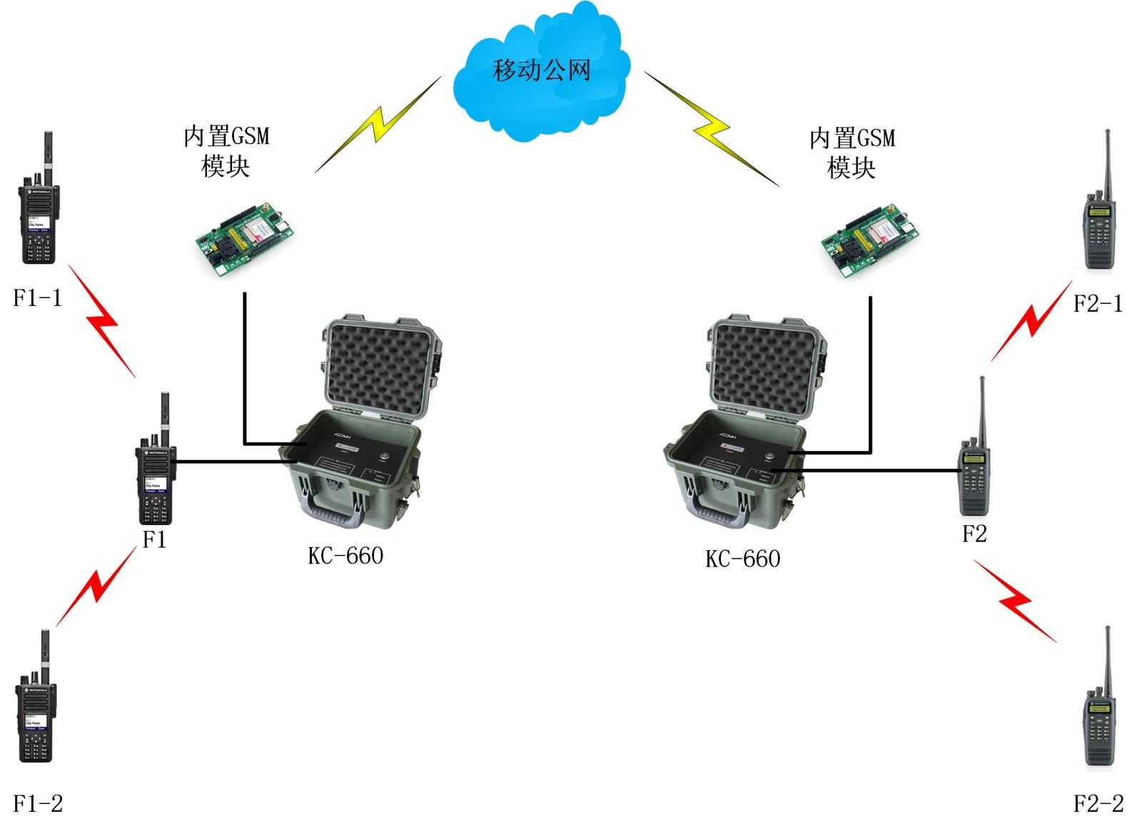设备可内置GSM 语音模块,实现二个互联终端专用移动通信设备通过移动网进行联网通信。