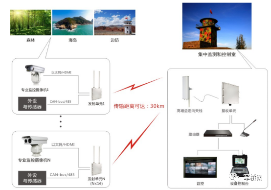 边海防监控需满足多点定点、移动监控需要,无线图传需要满足远距离、非视距、大带宽、高速率等要求,同时在组网方式上更灵活。视晶无线旗下的边海防远距离无线监控系统组成边智慧海防方案可满足边海防等场景的远程监控需求,替代原有人工巡逻。