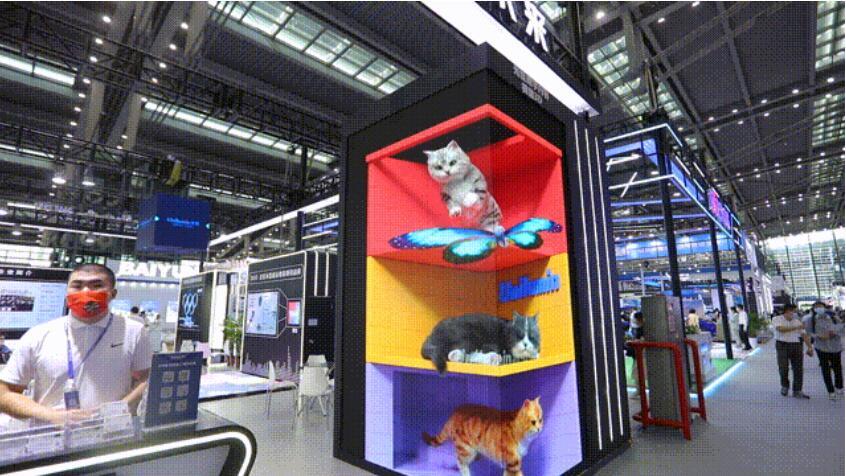 萌宠间的互动细节被洲明内容团队利用裸眼3D技术高度还原