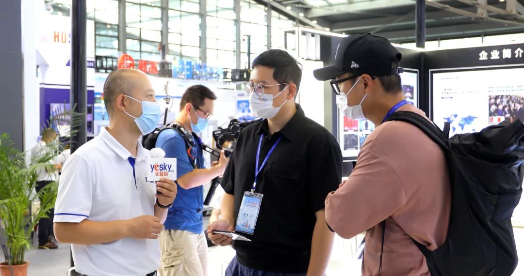 洲明科技总工程师王海波(左1)接受媒体专访