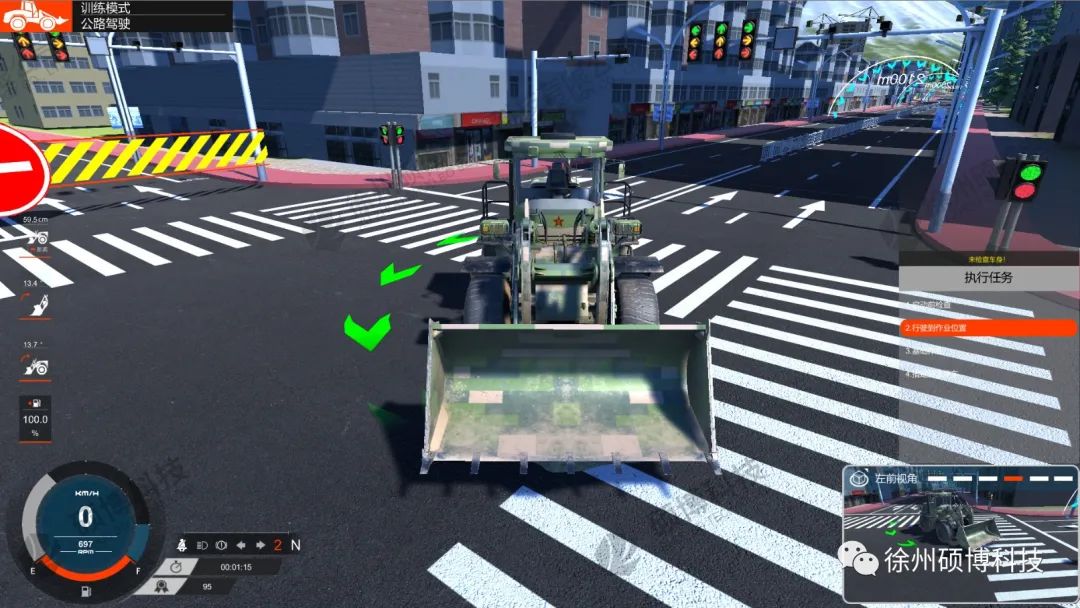 2) 考核模块:驾驶训练、装车、平整路面、软件工况模拟场景与实际情况、实际工作场景一致。