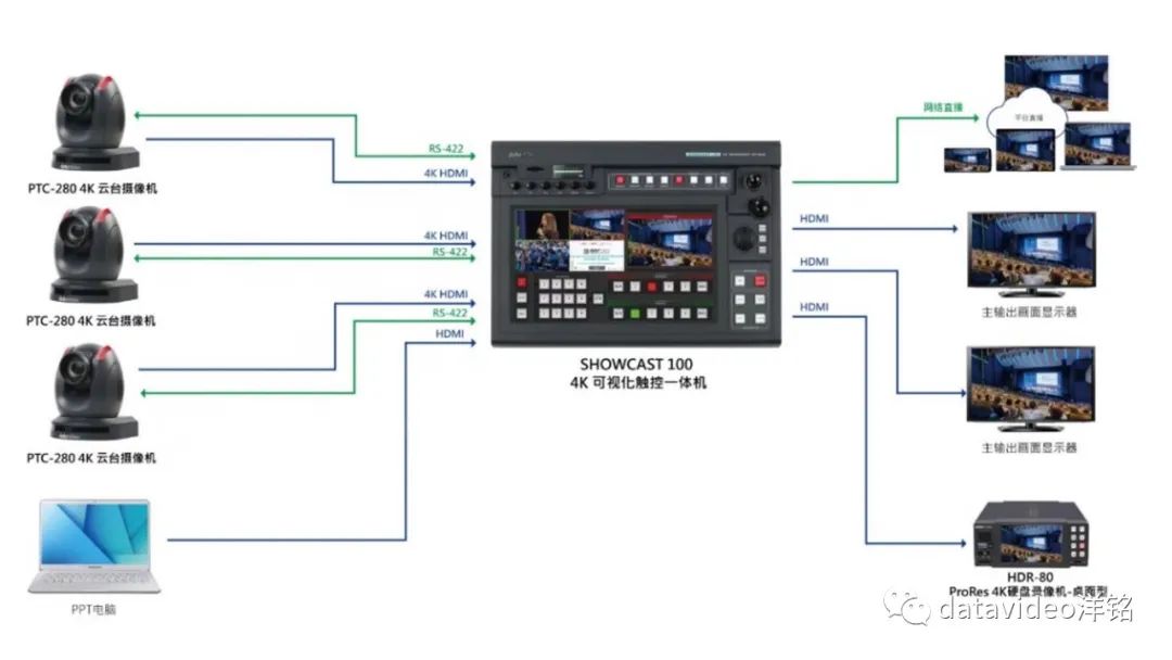 我们将会在展会现场展出七合一4K可视化触控一体SHOWCAST100搭配PTC-280 4K云台摄像机组成的4K一站式校园录直播系统,以灵活多变的制作形式满足各种视频画面采集需求。欢迎新老朋友前来展会现场洋铭展位参观指导。