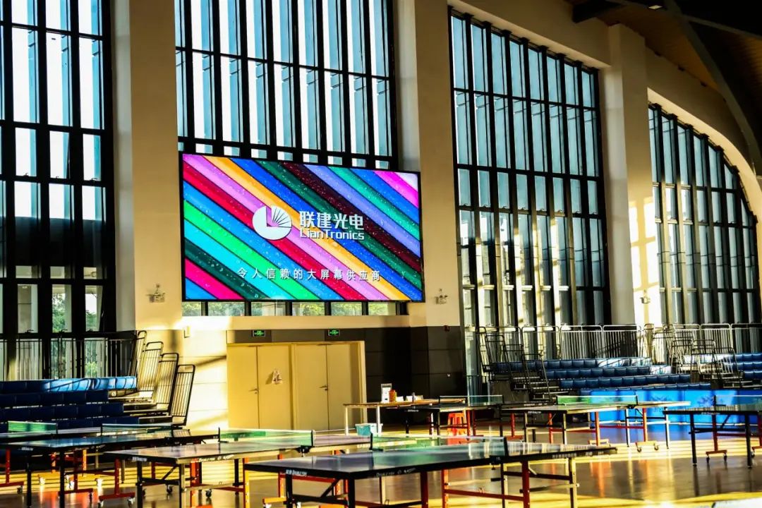 学校户内外的体育馆引入联建光电LED显示屏,升级馆内设备,便于各类体育项目的开展,可以在大型活动或校内外的比赛活动中,播放活动的宣传图片及视频,显示比赛双方的得分。