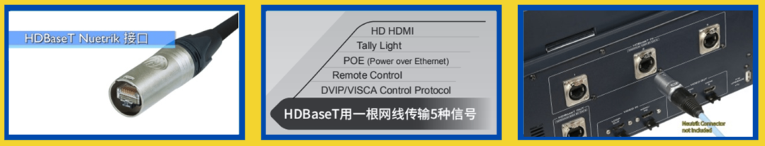 HDBaseT的特色就是能够一线传输多种信号。在上海洋铭的设计方案中,一线传输包含视频、控制、供电及Tally等常用信号,在不影响性能或高质量传输的同时,减轻布线重量、降低了布线复杂度,设备采用RJ-45接口标准,安装轻松且牢固。