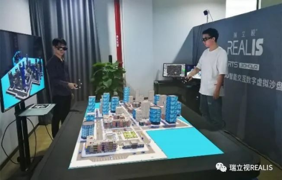 在交互上,瑞立视全息3D交互数字虚拟沙盘可通过无线手柄,数据手套对数字虚拟场景进行深度交互操控,也可以选择通过手势感应识别进行轻交互。为满足不同行业的实际需求,还可定制开发更多的智能交互方式,使全息3D交互数字虚拟沙盘在更多领域应用充满想象空间。