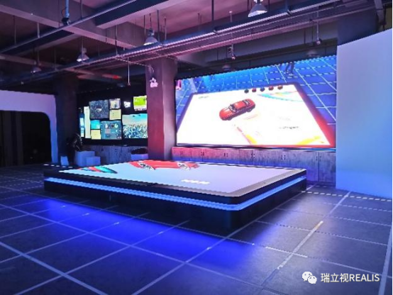 瑞立视全息3D交互数字虚拟沙盘可以实现“2个主视角+N个观察视角”。瑞立视全息3D交互数字虚拟沙盘2个主视角显示是通过特殊的光学处理和3D信号处理技术,将3D显示信号分成2个不同的内容,并结合定位技术把不同的内容同时显示给不同视角的人,从而实现从不同视角看到同一个内容的不同角度,并且对其进行自由交互,形成真正意义上的全息3D交互。此外,瑞立视目前也正在研发可支持3个主视角的产品。