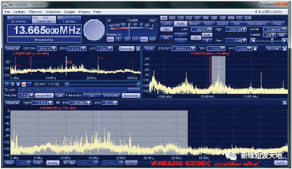 随机提供的控制软件提供功能强大、逻辑性强的用户界面,并配置多个频谱分析仪窗口,包括45MHz宽的全景频谱。频谱窗口可以缩放,可选择标准模式或瀑布图示显示。
