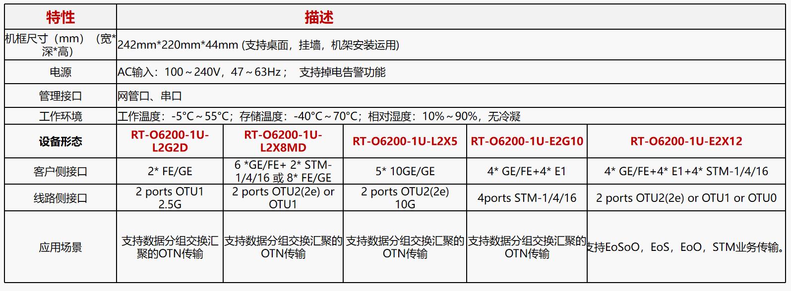 固定盒式接入型OTN传输系统 RT-O6200-1U