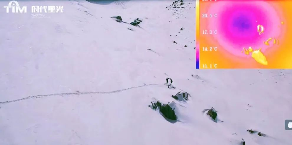 人员被困雪山之中,抢抓时间营救是关键,如果不能及时找到被困者,他们很可能会被冻伤甚至有生命危险。该装备搭载了红外双光吊舱,可满足在高原高海拔地区执行精确侦察任务,35倍可见光吊舱可在200米外清晰侦察地面微小目标,红外热成像能够在100米以上高空清晰侦测热源物体并测量温度。在恶劣环境下依然能够保持极高的探测效率,并快速判断被困人员是否有失温迹象。同时,该装备还能够对灾区进行快速侦察,实时传输现场画面,为营救人员规划营救方案提供科学依据