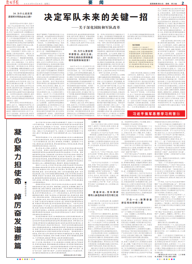 在改革开放40多年历程中,党的十一届三中全会是划时代的,开启了改革开放和社会主义现代化建设历史新时期。党的十八届三中全会也是划时代的,开启了全面深化改革、系统整体设计推进改革的新时代。这次全会将深化国防和军队改革纳入全面深化改革的大盘子,上升为党的意志和国家行为,我军迈上了改革强军的新征程。习主席指出,深化国防和军队改革是实现中国梦强军梦的时代要求,是强军兴军的必由之路,也是决定军队未来的关键一招。