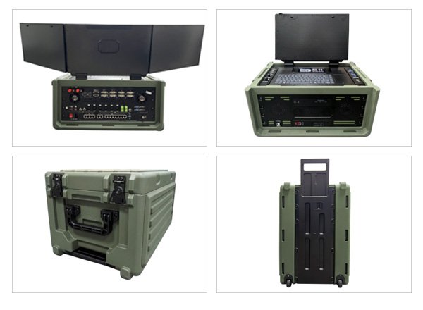 主要用作户外室内视频会议、多路视频切换、通信的枢纽设备,具备视频矩阵、语音通信、加密通信等功能,结合使用环境及定制方案在产品中加入核心设备散热风道设计、电网通信等实用功能及设计。