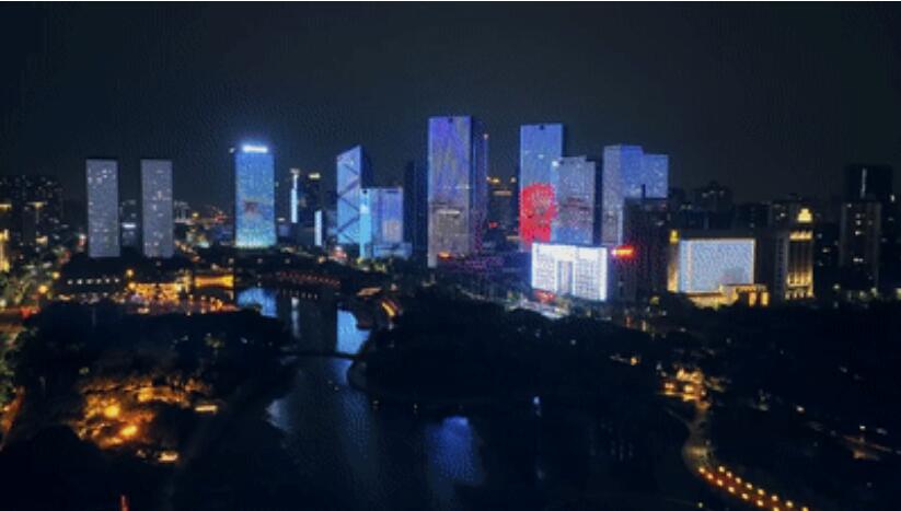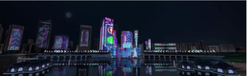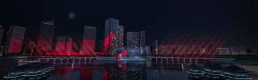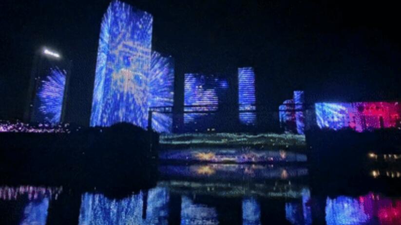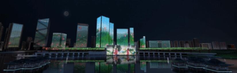 杜健翔总导演对此坦言,「如何利用几十栋楼宇媒体立面、近300米长的机械翻转LED透明屏,以及大型水下升降式全息投影影幕,对我们来说是最大的挑战。」