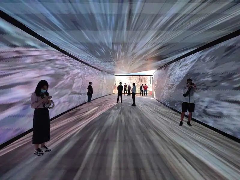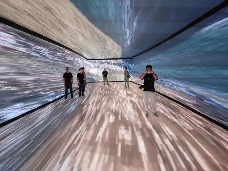 其中,新近建设的元宇宙剧场全面应用洲明硬件+软件+内容+交互的一体化解决方案,采用1200平米六面电子屏全景铺设,融合投影及LED沉浸式时光隧道技术,打造亚洲最大、世界第二,也是河南省首家元宇宙剧场。同时由洲明数字内容团队历经数月,经过大量深度调研,通过裸眼3D,数字建模和数字虚拟人等定制内容,高度还原了红旗渠修建场景,风土人情和历史人物,实现了沉浸式的虚拟体验,为游客带来了更强的视觉冲击力,更有趣的互动体验感。