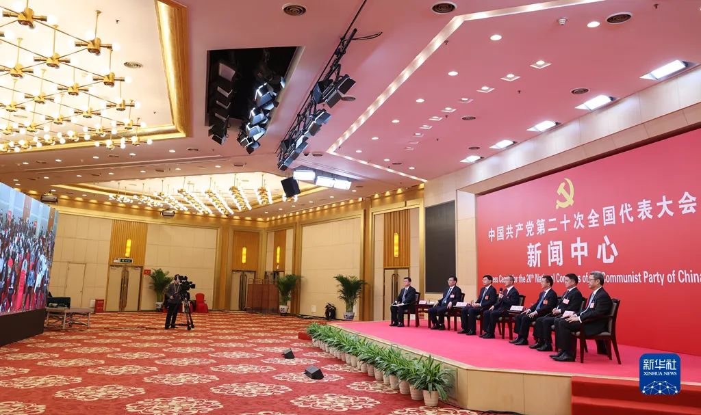 10月15日,大会新闻发言人孙业礼举行新闻发布会。图为分会场。新华社记者 金良快 摄