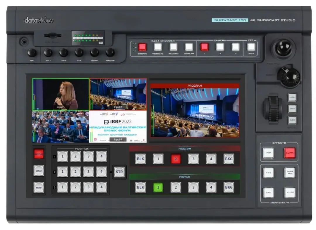 Datavideo洋铭的4K云台摄像机系列具有高画质、安装灵活、多种远程遥控方式可选的特点,配合SHOWCAST100的摄像机预设位功能,3台摄像机总计可以提供12个预设位,让操作人员可以迅速获得需要的画面。