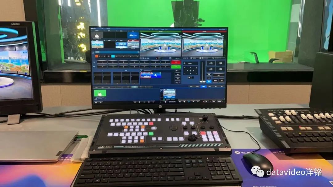 虚拟演播室系统,用于新闻录制,口播等,瑞金融媒选用了Datavideo洋铭的TVS-3000 4K AR 三维追踪虚拟演播室系统, 4K的高画质可以点亮融媒体节目中的每一个画面细节。使视频画面呈现更加完美。同时TVS-3000带有高性价比的追踪器,可安装在摇臂上,获得高大上的视觉效果,实现真实空间大范围推拉摇移效果,完成沉浸式的空间定位。