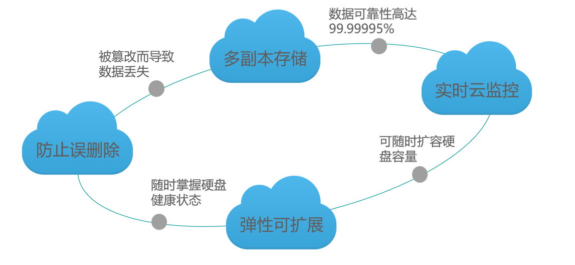 是一种基于分布式架构的,可弹性扩展的虚拟块存储服务。具有高数据可靠性,高I/O吞吐能力等特点。像使用传统服务器硬盘一样,客户可以对挂载到云服务器上的云硬盘做格式化、创建文件系统等操作,并对数据持久化存储。云存储支持在可用区内自动复制数据,防止意外的硬件故障导致数据不可用,以保护客户的业务免于组件故障的威胁。