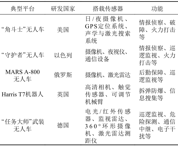 陆地无人系统主要用于情报搜集、侦察巡逻、扫雷除障、火力打击、战场救援、后勤运输、通信中继以及电子干扰等领域,随着陆地无人系统在战斗中的优势愈发凸显,针对其的研究愈发受到各国的广泛关注。