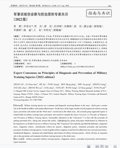 《军事训练伤诊断标准与防治原则专家共识(2022版)》(以下简称为《共识》)
