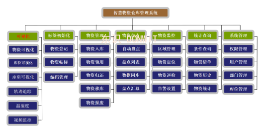 将有源标签与物资进行绑定,可随时查看物资状态,每一种类别都有标签,它具有一目了然、管理方便的特点。