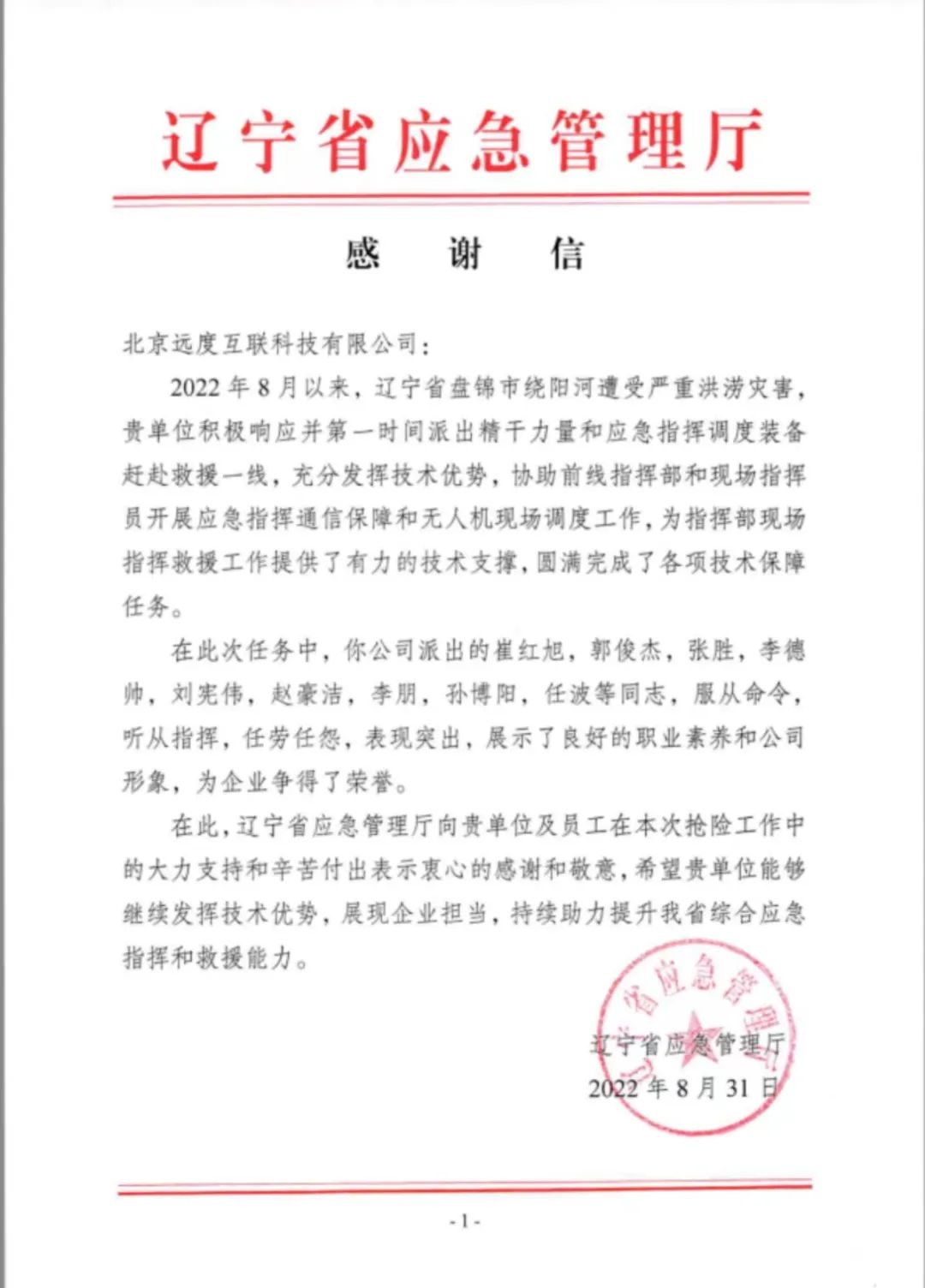 远度科技创新研发的“空中中继”技术,通过两架小型复合翼无人机来配合执行通信中继任务,一台任务机为地面提供公网接入,一台中继机在空中为任务机提供信息中转通道,即“小型复合翼无人机空中应急公专网基站”,该系统弥补了应急条件下为了搭载很重的卫通设备导致无人机对起降要求很高的应用场景。今夏,在辽宁省盘锦市饶阳河洪涝灾害救援工作中,我们派出了由100V无人机+40V无人机的组合协助前线指挥部和现场指挥员开展应急指挥通信保障和无人机现场调度工作,为指挥现场指挥救援工作提供了有力的技术支撑,受到领导的肯定。该系统可以广泛应用于森林火灾、水灾、地震、台风等灾后的应急救援场景中,为受灾地区提供稳定而持续的信号接入保障。