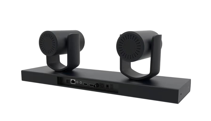 两个云台在自动框选全部与会者和自动特写发言者之间智能分工。摄像机内部实现各种场景之间的自动无缝切换。