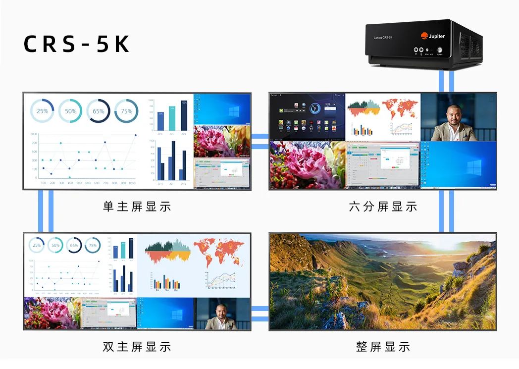 Zavus彩星21:9 5K视觉协作空间21:9的使用区域更比4K产品增加33%,可以展示更多的内容,同时搭配具有超强图像处理能力的Jupiter CRS5K图像处理器,能够实现数据、应用程序等多画面应用的极佳呈现以及视频图像管理应用,视频会议、文本展示、图片展示、影视作品展示等多种使用场景任意组合布局。
