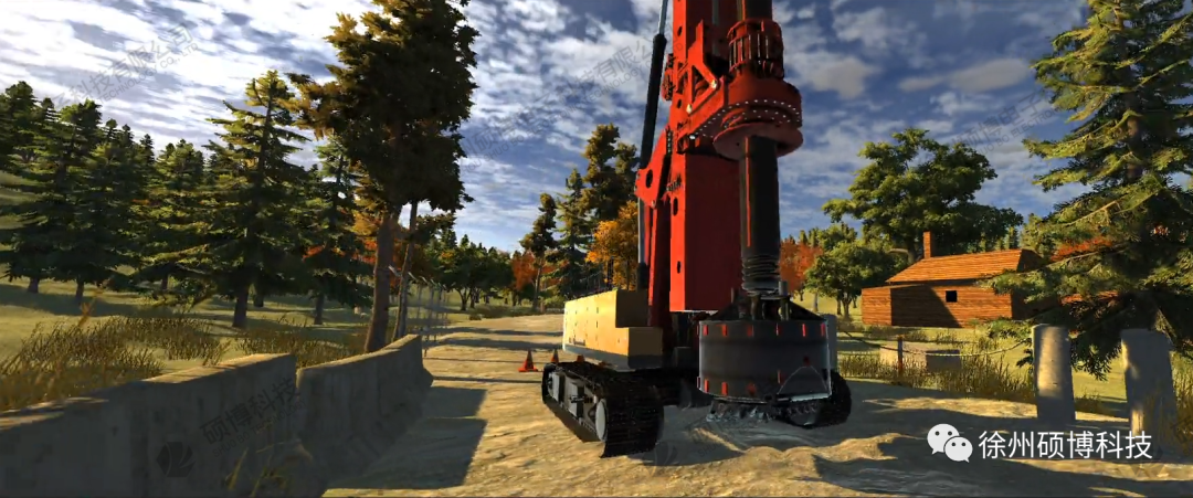 场景中各个动作与真实相符,如:旋挖钻机各机构的动作、物体之间的碰撞等具有相应的物理模型来实现。