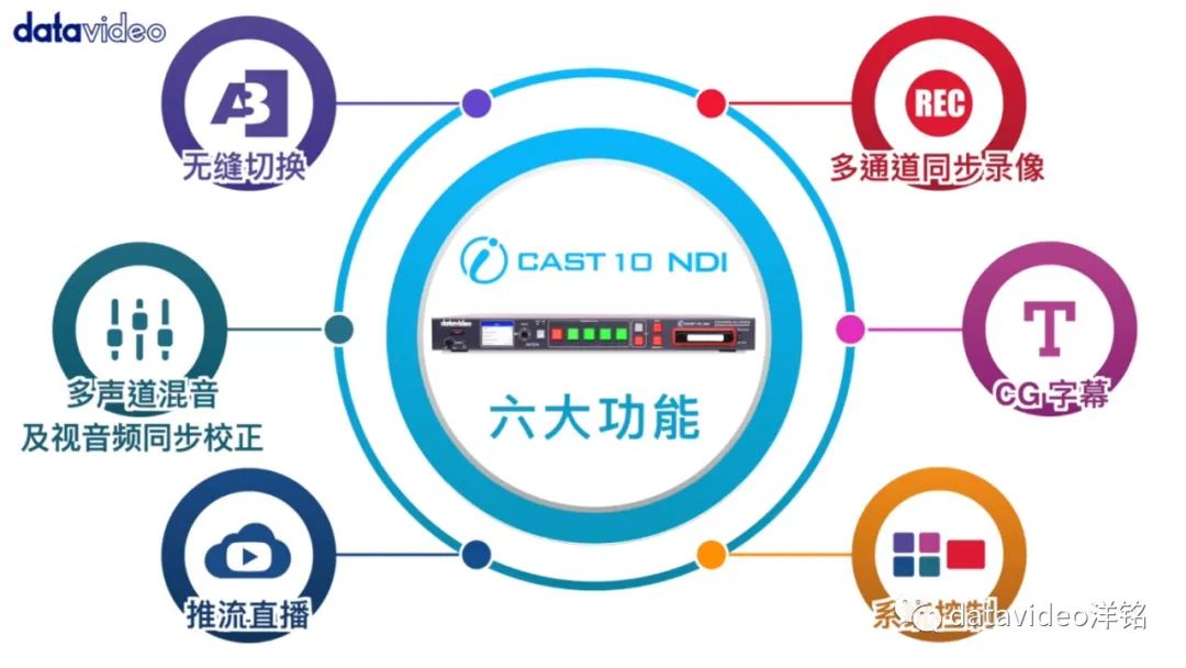 等功能,完成视频会议、课程或是节目的制作。最后还可通过iCAST 10NDI来对播出内容进行一键