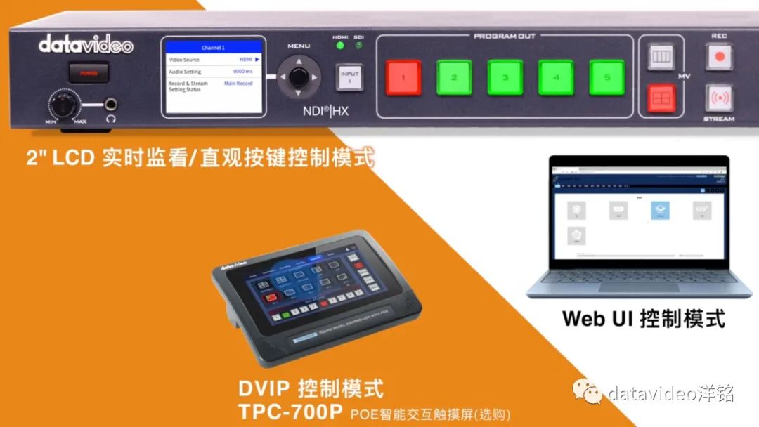 *Datavideo洋铭NDI系列均为专业PTZ摄像机,可以通过传统的RS-422接口,或通过DVIP(Datavideo专有控制协议)或Sony VISCA over IP轻松实现远程控制。
