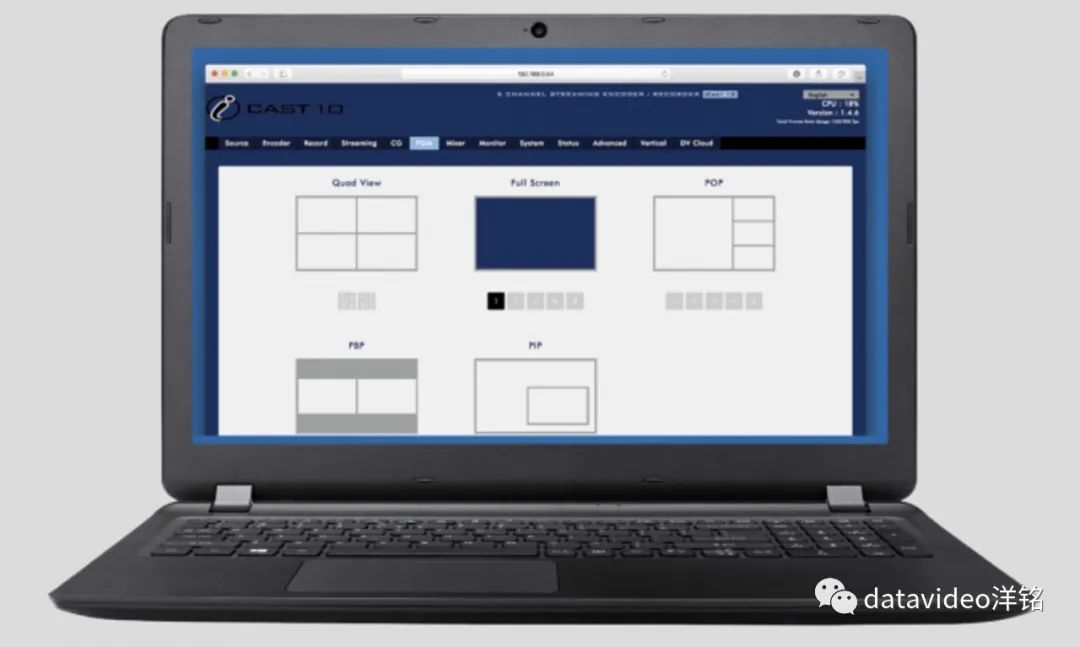 iCAST 10NDI提供5种主输出画面布局模式