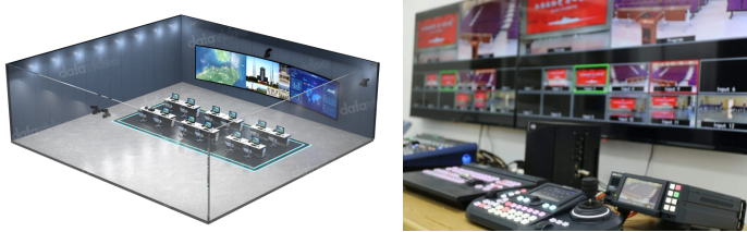 同时,部队信息化建设也少不了演播室,无论是要事新闻、访谈或是军事职业教育录制微课等,都可以在演播室拍摄制作。洋铭在本方案中采用虚实两用演播室设计,TVS-3000 4K AR 三维追踪虚拟演播室系统,可在制作4K虚拟视频的同时植入AR功能辅助视频呈现更加生动、明确,加上TVS-3000支持NDI串流协议,通过网络直接将异地信号拉入演播室,可进行信号双向传输交流;实景演播室可采用EFP多机位拍摄模式,使用HS-4000便携移动演播室进行多机位节目制作即可。