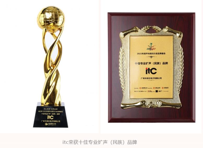 为寻找业内能力卓越、高瞻远瞩、广受认可的领军企业,慧聪音响灯光网携手行业权威专家、厂商等,共同评选出2022年度音响灯光行业十佳品牌等奖项。itc在三个月的评选活动中凭借过硬的实力与广泛的认可度,赢得了评审专家的青睐,得到了广泛的支持,在众多参评品牌中脱颖而出,再度荣获