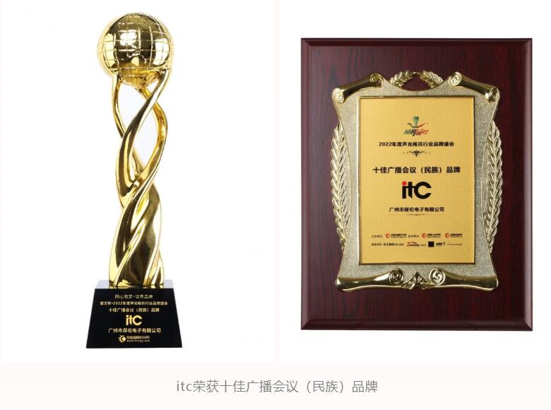 作为音响灯光行业的一份子,29年来,itc不忘初心、始终秉承“领先行业、造福人类”的企业使命,以最专业的团队,为行业打造一流的声光电视讯系统整体解决方案持续加力赋能。这已经是itc继2018年获得十佳广播会议(民族)品牌后,2019年、2020年、2021年、2022年