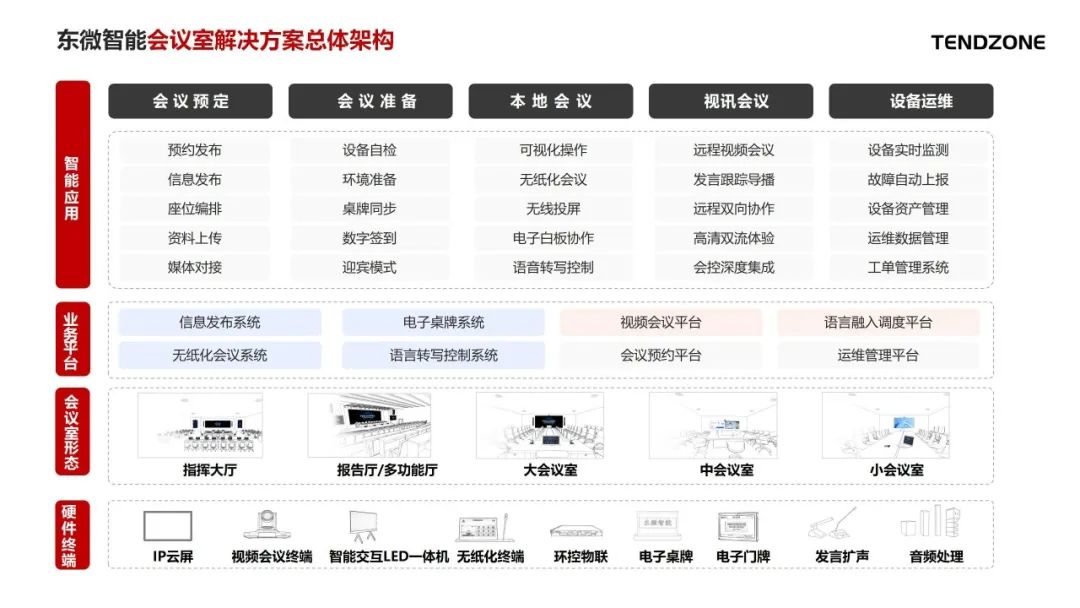 普通会议室、视频会议室、无纸化会议室、报告厅、多功能厅、展厅等;