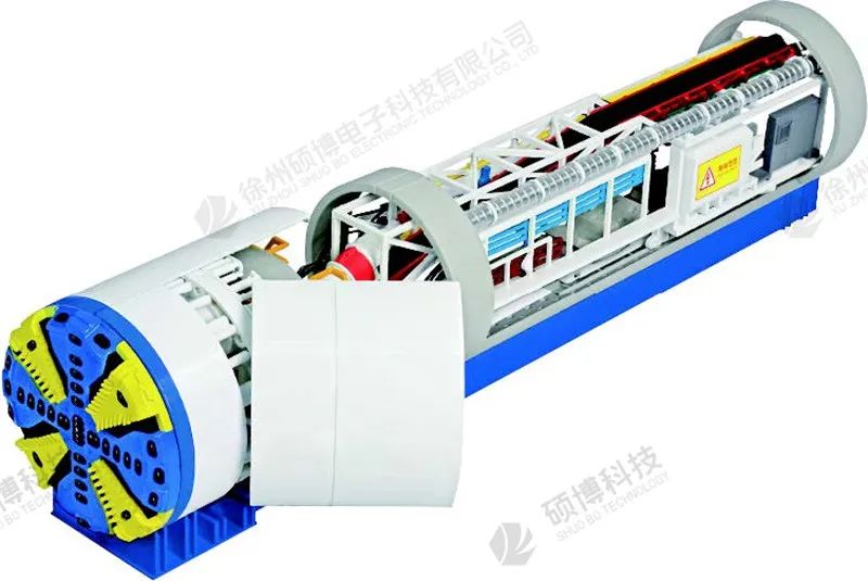 盾构机实物微缩教学模型选用真实土压、泥水、TBM盾构机原型作为制作蓝本,按比例设计加工制作;该教学模型是以培养学员实际操作动手能力为主,相关教学理论知识为辅的多功能一体机,软件部分包含基础教学、盾构机的构造、盾构机实际操作、理论考试,搭配虚拟现实(VR)设备让学员更加身临其境具有真实操作感。