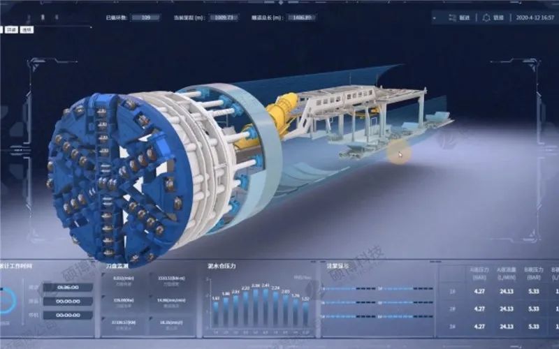 (4)高度还原真机按键布局,参数显示界面,增加操作沉浸感和仿真性,学员通过真实的操作面板按钮可与软件系统进行人机交互模拟土压\泥水\TBM掘进机掘进全过程,同时以三维动画形式呈现掘进过程。