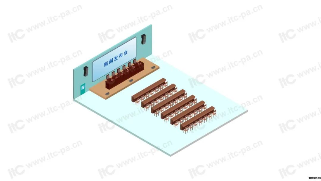新闻发布厅一般建设在指挥大厅的侧方独立空间,主要发布重大紧急事件、备战作战演练新闻,在重大战事时期为军队内部传递即时作战信息和向人民群众传递正面舆情,稳定人心,让部队作战情况及时有效传递给相关战区和全国人民,维系本地军队和战区以及人民群众之间的信息沟通。应用itc会讨扩声系统,具备远距离精准拾音,优化声音处理设备还原更纯净的人声,让发布者的声音和情绪更加清晰精准传达。