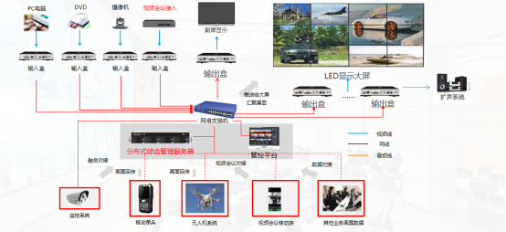 :可视化坐席调度管理平台、LED显示系统、扩声系统、数字会议系统、远程视频会议系统、录播系统等