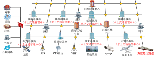 海事监管部门的主要职责是实时掌握水上船舶交通态势、动态评估水上交通安全风险、及时发现和处置水上交通违法违章行为,发生水上应急事件时需快速组织跨部门协同处置,有效保障水上交通安全、提升船舶通航效率、保护海洋环境,促进航运高质量发展。当前,随着国际形势的变化,基于国家新的总体安全观,保障水上交通安全已从传统的安全生产层面,扩展到国家经济安全、战略安全层面。“保障战略物资运输安全,保证重要战略通道支点安全,实现物流供应链畅通和海运业高质量发展”已成为新发展阶段海事的重要政治任务,是海事系统贯彻新发展理念、服务新发展格局、加快建设交通强国重要的抓手之一。为适应新形势新要求,国家海事主管部门提出“未来‘五星旗’和中资‘方便旗’船航行到哪里,海事监管服务就保障到哪里”的新发展目标,拟构建陆海空天一体化水上交通运输安全保障体系,实现我国管辖水域水上船舶动态的全面掌控、现场执法的高效指挥、重要通道和战略支点的即时感知,实现战略物资运输安全有效保障、交通要素全面协同、应急突发事件有效处置,全面保障海上供应链安全畅通,维护好国家海洋权益。
