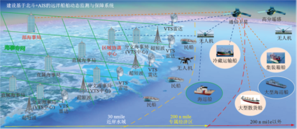 为了实现在全球海域为“五星旗”、中资“方便旗”船舶提供全域全时的交通安全保障服务,需先解决广域海上的全方位、全天候船舶交通态势掌控问题。