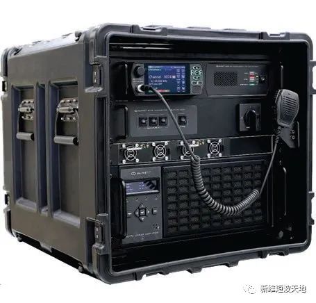 大功率移动基站用于野外指挥所快速布署,主要设备与固定基站大致相同。为缩小体积,前级单元的构造有所不同。全套设备集成在军用高强度抗震携带箱内。