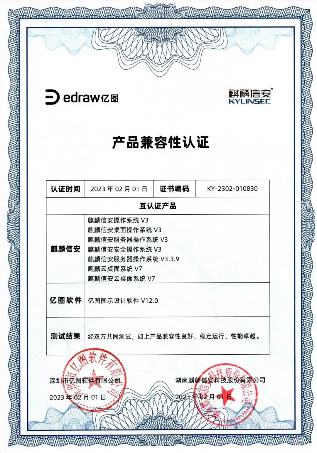 近日,麒麟信安与深圳市亿图软件有限公司(以下简称“亿图软件”)开展生态合作,共同完成了亿图脑图MindMaster软件V10.0、图示设计软件V12.0、项目管理软件V2.0与麒麟信安操作系统系列产品的兼容性认证测试,测试结果表明双方产品兼容性良好、稳定运行、性能卓越。