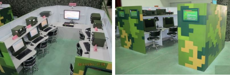 基于实装指挥软件及半实物仿真技术构建指挥车模拟方舱,具备与实装一致的功能及结构特点,能够按实际、实战需求搭建各类不同规模的指挥所。