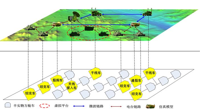 基于通信、雷达、电抗等电子装备模型,构建形成了战场复杂电磁环境仿真,突出兵力对抗中的各类信息化要素,充分展现信息对抗对数字化部队实际作战指挥的影响和作用,实现了复杂电磁环境下的实战化训练。