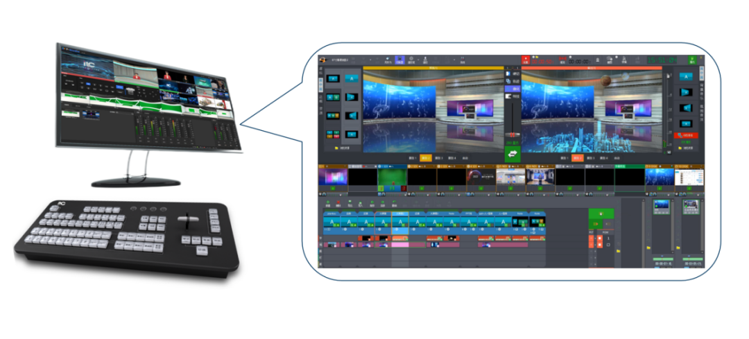 本次itc云厂长直播活动,正是利用了自产自研的虚拟录播系统完成线上平台的直录直播。接下来,小编将从虚拟演播室建设、直播镜头导播以及多平台直播推流应用三个板块与大家分享itc此次直播技术和场景应用。