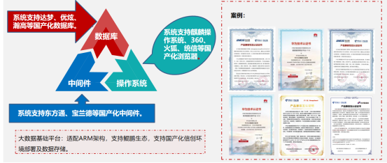 军队应用数据中台完成软件产品所用的数据库、中间件以及操作系统的国产化适配,保证政务数据中台的信息安全;同时完成大数据基础平台ARM架构适配,顺应大数据发展趋势,逐步完善军队数据中台信创体系。