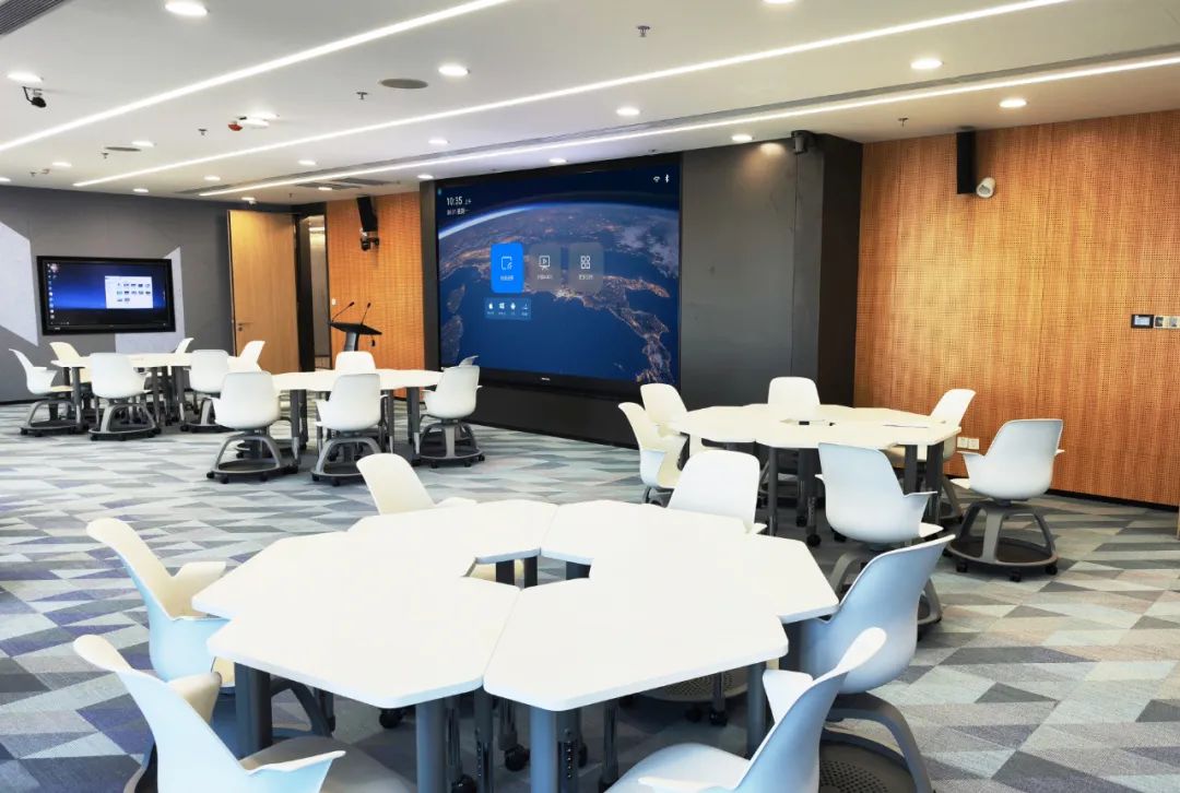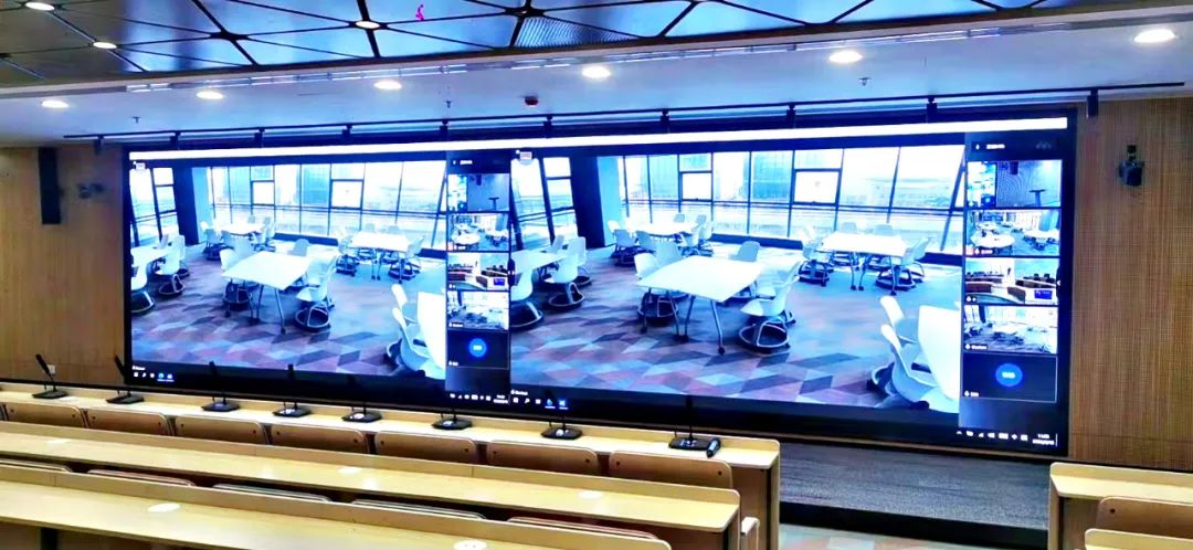 项目总面积近100㎡,应用于多功能厅、阶梯教室和培训室。LED智慧会议显示终端的应用,突破了企业传统的会议模式,通过高清LED显示大屏,出色显示会议内容,观看舒适不反光;高集成LED会议一体机,可在会议中进行互动书写,多终端无线投屏,让会议更高效便捷。